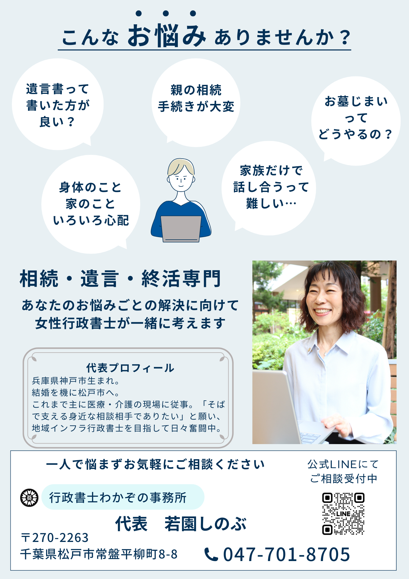 相続や遺言に関することだけでなく、生前整理や不動産、広く終活に関することで気になることがあれば、この機会にちょっと得する情報を手に入れにいらしてください。